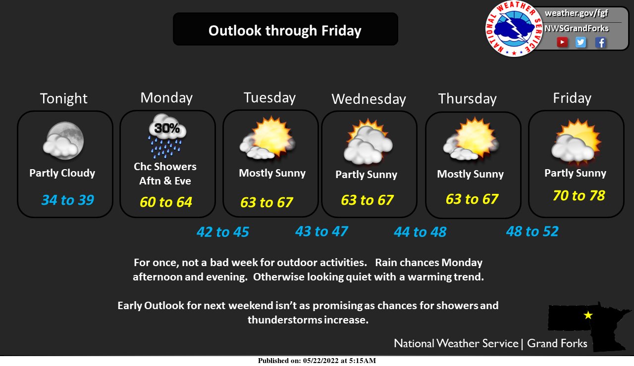 Nws Grand Forks On Twitter The Week Ahead Will Feature Much Quieter Weather And Gradually Warming Temperatures Yes Those Are Forecast Highs In The 60s No It S Not A Typo Ndwx